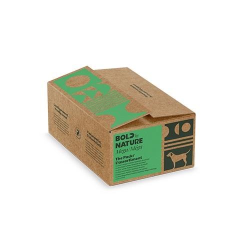 Mega flavour. Mega Variety. This Pack comes with all of our Bold by Nature Mega flavour favourites: Mega Chicken, Mega Beef, Mega Turkey, Mega Pork, Mega Duck and Mega Blend patties. Locally prepared with pet approved ingredients. This is for the dogs that want it all.