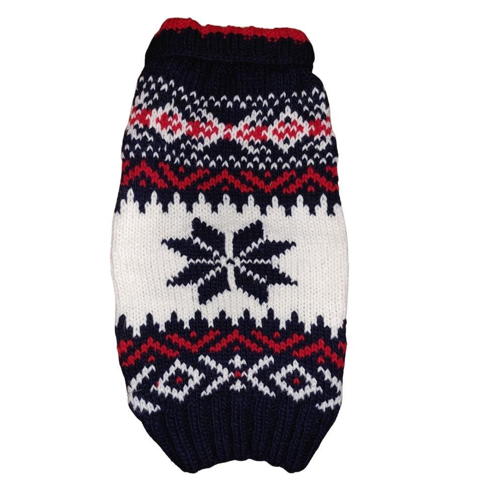 The Navy Vail Dog Sweater design was inspired from winter with colors of blue, white and red.