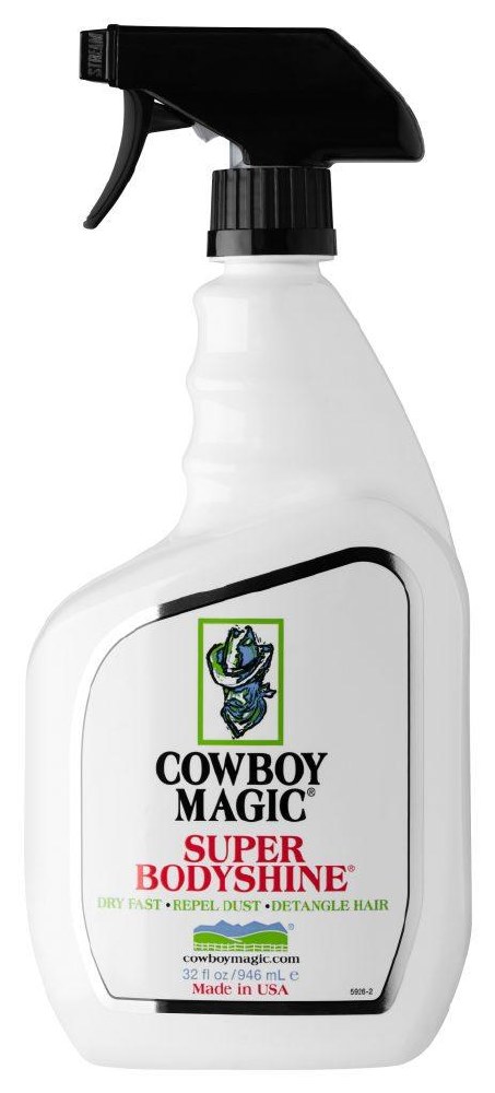 SUPER BODYSHINE® makes it more difficult for show ring and stable stall dust to collect on hair saving grooming time and work.