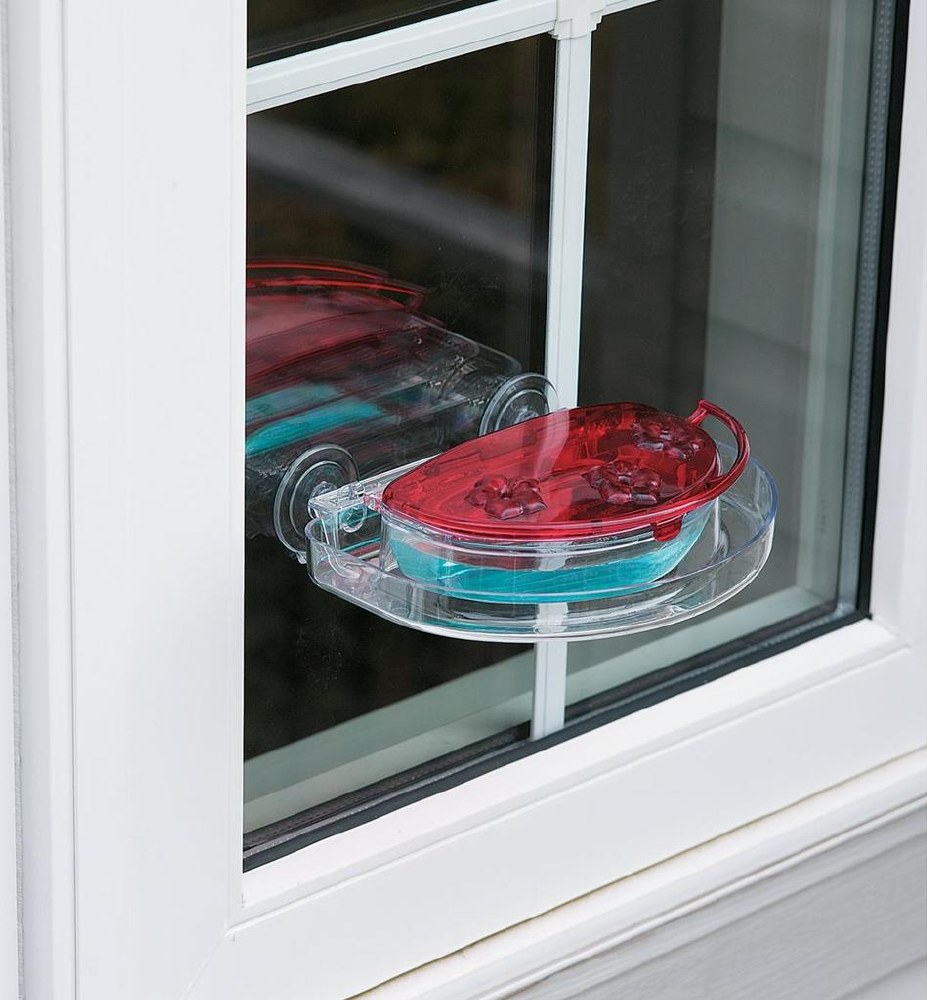 This feeder mounts directly on a windowpane with suction cups so you can observe hummingbirds up close.