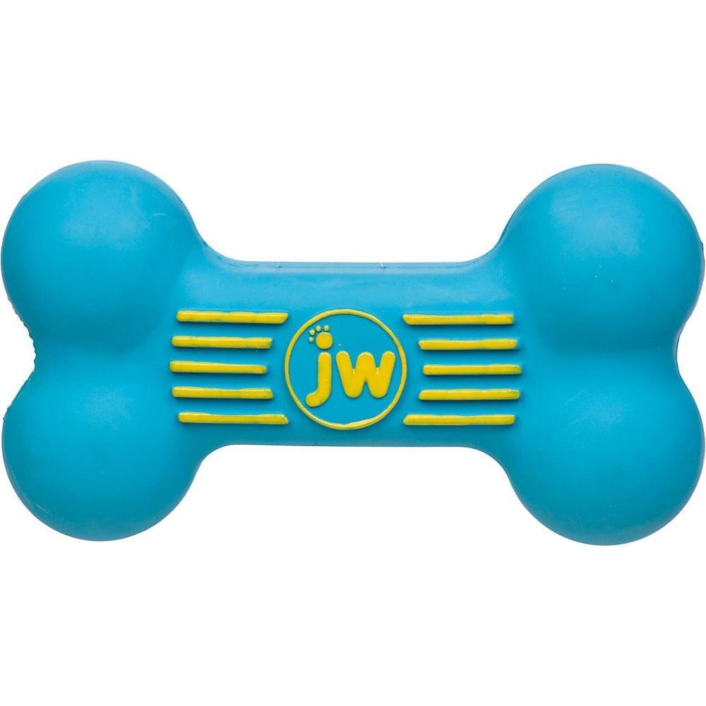 JW® iSqueak® Bone Dog Toy is a toy your four-legged friend is sure to love, no bones about it! This long-lasting dog toy is fashioned of thick-walled, heavy-duty rubber and finished with Safe-Squeaker Technology™ which let's out a long-winded, high-pitched squeak as your dog bites down, while ensuring the squeaker stays inside of the bone, preventing accidental choking or swallowing. The pliable, resilient rubber provides a fun bounce when thrown and will stand up to tough play. You and your dog are sure to have a great time playing with this fun dog toy. Ships in assorted colors.