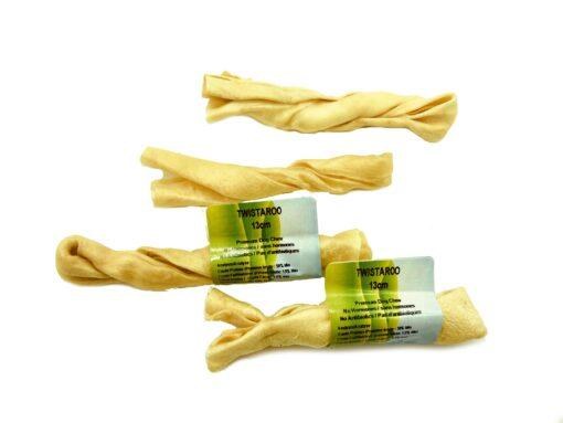 A healthy natural kangaroo tail twist chew (roo chews). The all natural twistaroo chew dogs go crazy for. This is an all natural roo chew with no additives, no hormones, and no antibiotics. It is slow dried to perfection. A great alternative chew for dogs with beef / chicken allergies. This all natural chew averages 13cm long
