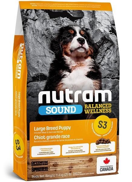 S3 Nutram Sound Balanced Wellness® Large Breed Puppy Food is formulated to meet the nutritional levels established by the AAFCO Dog Food Nutrient Profiles for growth, including growth of large size dogs (70 lbs or more as an adult).