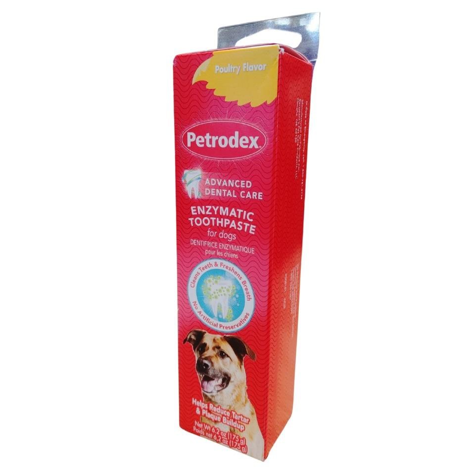 Petrodex Enzymatic Toothpaste is effective home dental care designed specifically for dogs. Dogs require dental care too. Almost nine out of ten adult dogs have some form of pet dental disease. Petrodex Enzymatic Toothpaste is effective home dental care designed specifically for dogs. When used regularly, it is proven to help reduce plaque and tartar accumulation, thereby helping maintain good dental health. Hydrogen-peroxide producing formula does not foam, so no rinsing is necessary. Safe and highly palatable