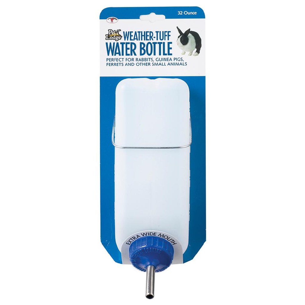 This plastic water bottle works great for rabbits, hamsters, gerbils, guinea pigs, chinchillas, and ferrets. The extra-wide mouth accommodates ice cubes for cooling the water in hot weather. Easily attaches without tools to most wire hutches. Can be used indoors and outdoors and is airline approved. Holds 32 ounces.
